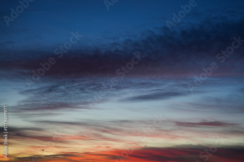 Obraz premium Evening sky with soft clouds and warm gradient tones during sunset creating...