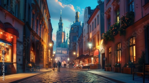 © Daisha, Fototapeta premium Evening Stroll Through a Cobblestone Street