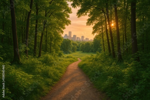 © The 2R Artificiality, Fototapeta premium Evening Stroll Through a Sunlit Nature Trail