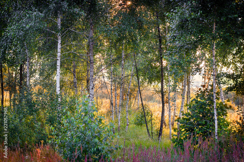 © CreativeSuburb, Fototapeta premium evening sun in the pine forest