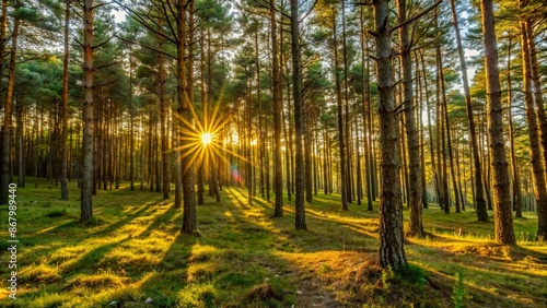 Obraz premium evening sun in the pine forest