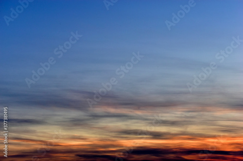 Fototapeta premium Evening sunset horizon with red clouds in summer