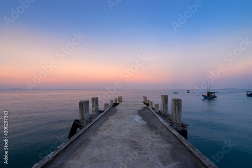 © bank215, Obraz premium evening sunset sky and old cement ocean dock