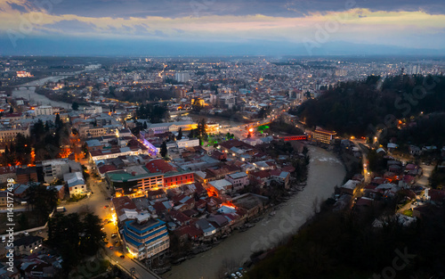 Fototapeta premium Evening top view of the historic city of Kutaisi, located on the two banks of...