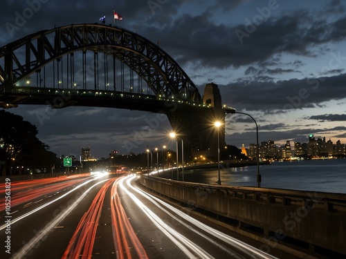 Fototapeta premium Evening traffic on the Sydney Harbour Bridge.