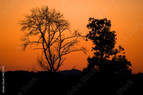 Naklejka premium Evening tree sunset sunrise orange sky