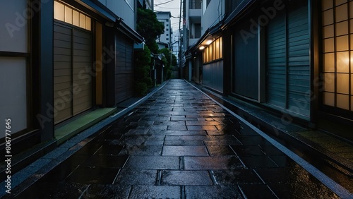 © sitifatimah, Fototapeta premium Evening view of a serene Japanese style street under a dark sky