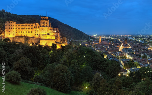 © Mikhail Markovskiy, Obraz premium Evening view of Heidelberg, Germany with Heidelberg Castle, Jesuit Church and Church of the Holy Spirit