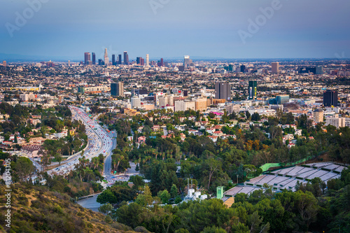 Obraz premium Evening view of the Los Angeles Skyline and Hollywood from the H