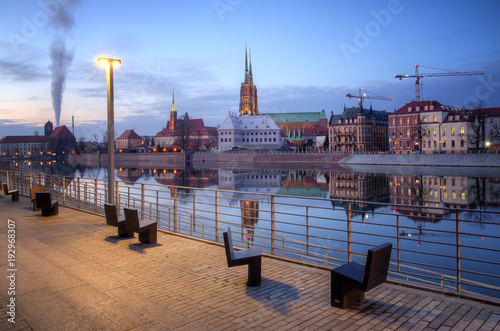 © Patryk Michalski, Obraz premium Evening view of the old city Wroclaw, Poland.