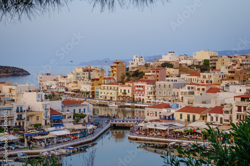 Obraz premium Evening view to the Agios Nikolaos harbour from the top