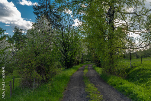 © luzkovyvagon.cz, Fototapeta premium Evening with sunset near Nejdek town with fresh green pasture land after rain