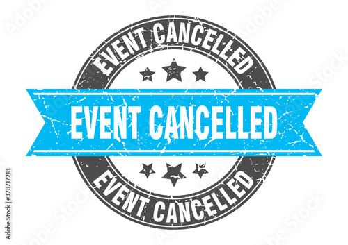 © Aquir, Fototapeta premium event cancelled round stamp with ribbon. label sign