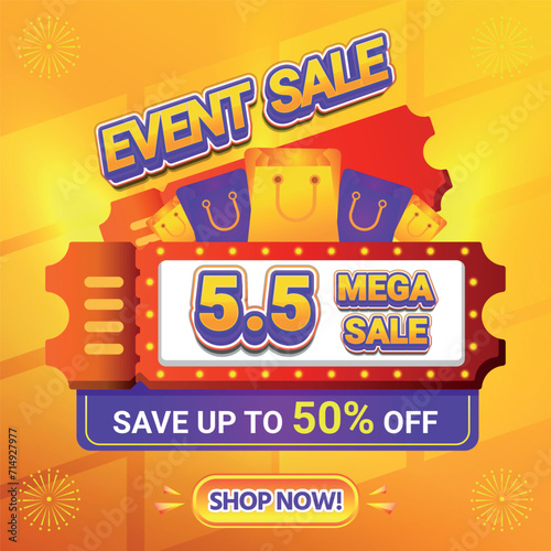 Fototapeta premium 5 5 EVENT MEGA SALE SHOPPING DAY 50 PERCENT OFF BACKGROUND SOCIAL MEDIA