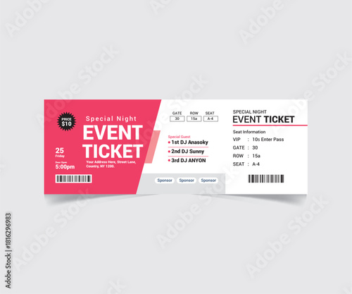 © Graphic Seller, Fototapeta premium Event Ticket Template Design
