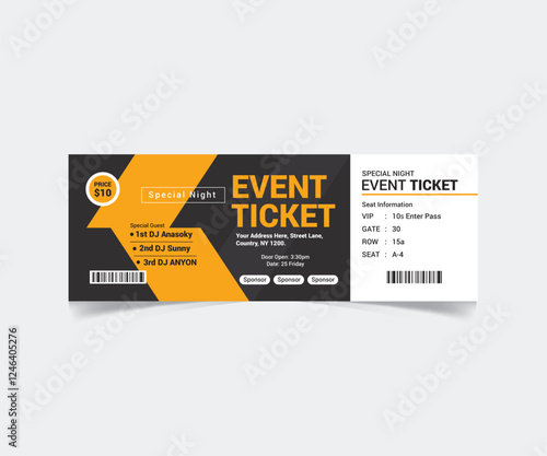 © Graphic Seller, Obraz premium Event Ticket Template Design with Vector File