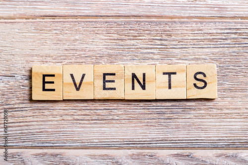Fototapeta premium Event Word Written on Wooden Cube on a wooden background