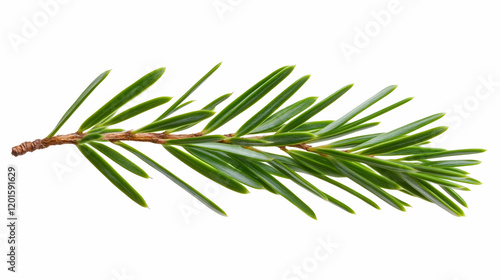 Fototapeta premium Evergreen branch, isolated on white background, ideal for botanical designs or holiday imagery