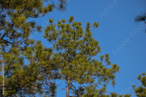 Obraz premium Evergreen Elegance: Pine Trees Against an Azure Sky