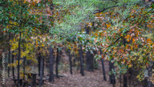 © Reed, Naklejka premium Evergreen Leaves in Autumn Forest