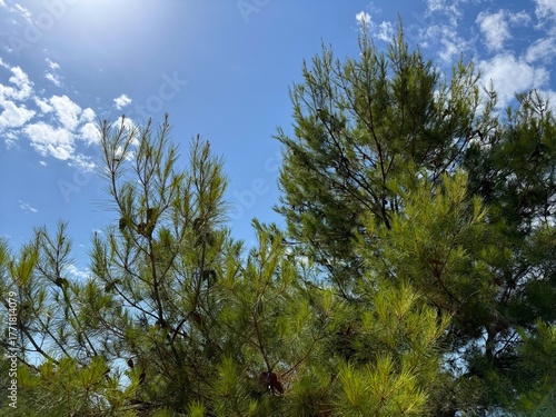 © OLENA LIALINA, Obraz premium Evergreen pine trees in the coniferous forest.