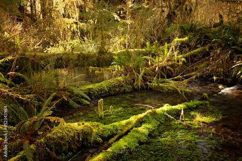 © Patricia Thomas , Obraz premium Evergreen rain forest of Washington State in the Pacific Northwest. Hoh rain forest with peaceful hikes and scenic trails.