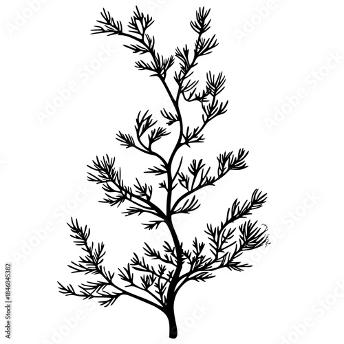 Naklejka premium Evergreen Silhouette - Sparse Needles, Minimal Color | Clean, isolated vector art for creative projects.