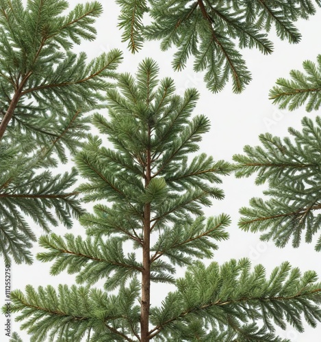 © Atittaya, Obraz premium Evergreen spruce tree with full branches and needles in a white background, evergreen tree, greenery, fir