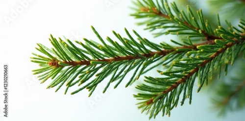 © yuwaree, Naklejka premium Evergreen tree branch isolated on white background with festive holiday atmosphere, fir, branch