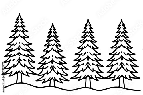 Fototapeta premium Evergreen Trees in Snow – Clean Line Art