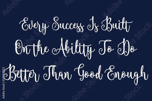 © Pleasant Mode, Obraz premium Every Success Is Built On the Ability To Do Better Than Good Enough Cursive Calligraphy White Color Text On Dork Grey Background