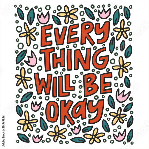 © rorygezfresh, Fototapeta premium Everything will be okay - hand-drawn quote with a doodling. Creative lettering illustration for posters, cards, etc.