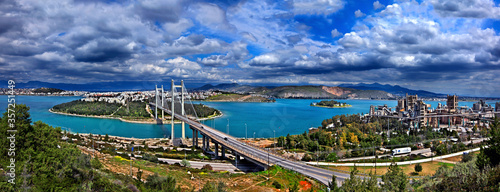 © Iraklis Milas, Naklejka premium EVIA ISLAND, GREECE. The High Bridge of Evripos and Chalkis ("Chalkida") town.