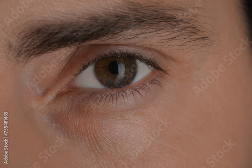 Fototapeta premium Evil eye. Man with scary eyes, closeup view