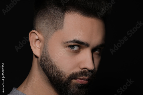 © New Africa, Obraz premium Evil eye. Man with scary eyes on black background