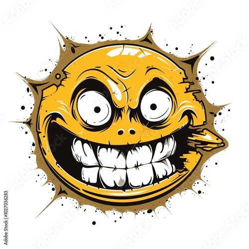 © Andrey KENO, Fototapeta premium Evil Smileys Face. TShirt Sticker. ACartoon Evil smiley. TShirt Sticker. Creepy Evil Smile. AI generated.