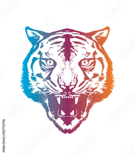 © artmarsa, Obraz premium Evil tiger head. Original vector illustration in vintage style. T-shirt design.