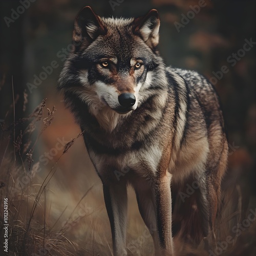 © Mix Creative, Obraz premium evil wolf standing in the forest