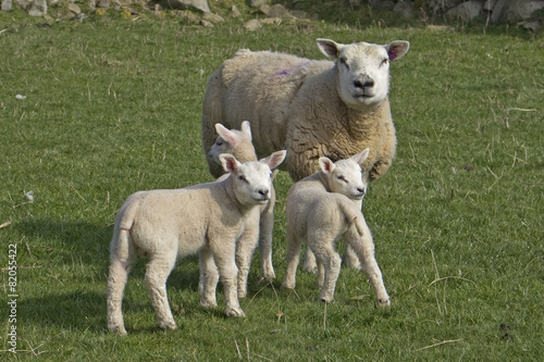 © creativenaturemedia, Fototapeta premium Ewe sheep and three newborn lambs