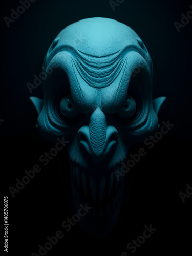 © Michael, Naklejka premium Exaggerated Nightmarish Face with Ominous Chiaroscuro Lighting in 3D Render