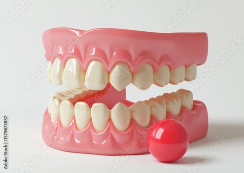 Obraz premium Examining Dentures Model with Red Ball for Better Dental Care