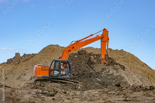© Makeev Petr, Obraz premium Excavator at the construction site pours a pile of soil