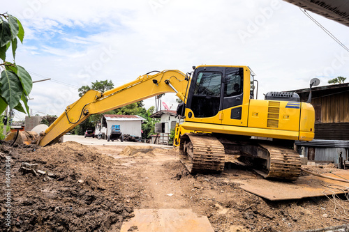 © sritakoset, Fototapeta premium Excavator breaks while creating the road.