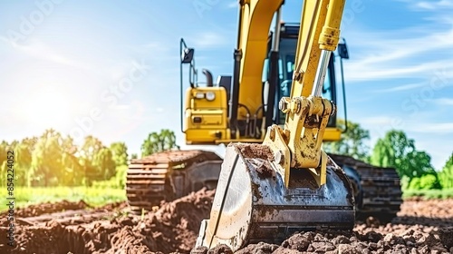 © anna, Fototapeta premium Excavator digging a trench on a construction site for foundation works