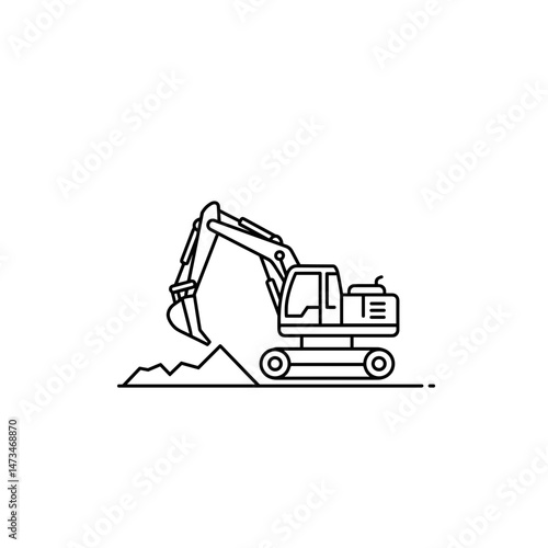 © Ferdinand, Naklejka premium Excavator digging soil in minimalist line art style