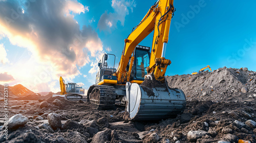 © pickypix, Obraz premium excavator digs the ground