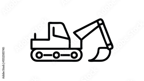 © revpy, Naklejka premium Excavator line icon. Heavy construction machinery outline vector symbol. Digger editable stroke pictogram for UI design