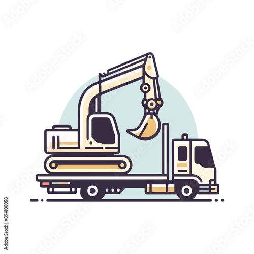 © logonardo, Naklejka premium Excavator on Transport Truck Illustration