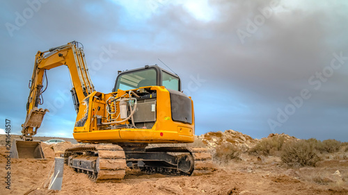 © Jason, Obraz premium Excavator tractor seen from back with empty sky
