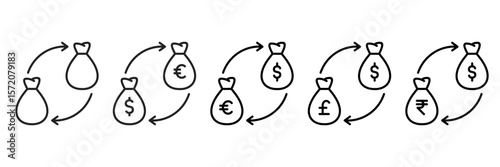 © New River, Obraz premium Exchange Icon Set With Different Currencies